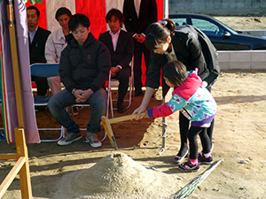 地鎮祭は、土木工事や建築などで工事を始める前に行う、その土地の神(氏神)を鎮め、