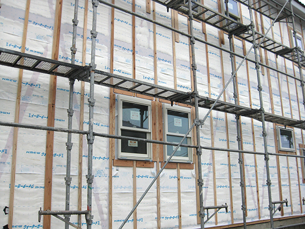 外壁シートは、外壁表面で防ぎきれなかった雨水や、内部の結露水が、構造体にまで達しないようにする大切な役割があります。