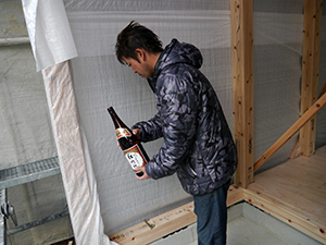 棟上げまで無事に工事が完了したことを感謝し、神様にお礼を言いました♪
