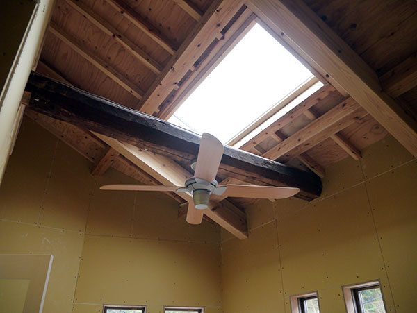 シーリングファンを支えている柱は、前のお家を支えていてくれていた柱だそうです♡