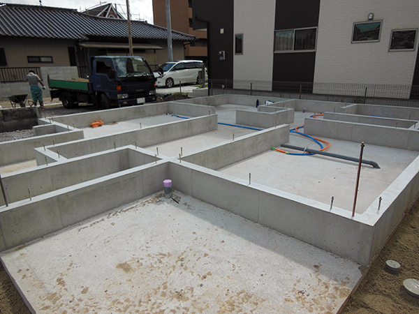 コンクリートも固まり基礎が完了したら、全体を見渡して、ひび割れやジャンカなどがないか確認していきます。