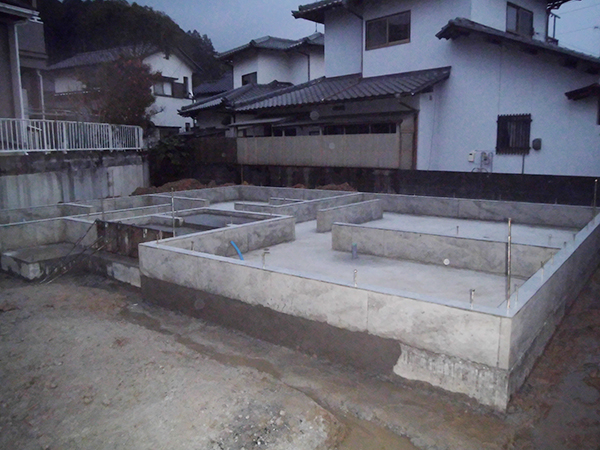 コンクリートも固まり基礎が完了したら、全体を見渡して、ひび割れやジャンカなどがないか確認していきます。