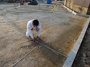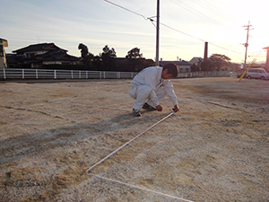 須惠町S様邸の幸せづくり状況:地縄♪ 須惠町S様邸の地縄を行いました♪ 地縄とは・・ 建物が敷地に対してどのように建てられるかを確認する工事です♪ ずれの無いよう正確に測っていき、縄を張っていきます!! タグ: 須惠町S様邸の幸せづくり状況:地縄♪
