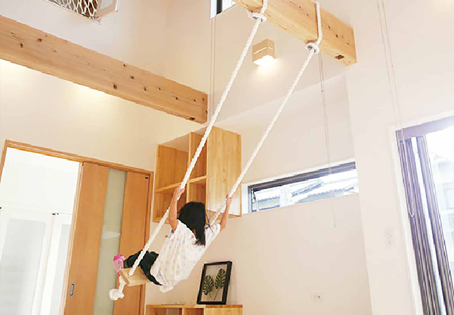 吹き抜け勾配天井。