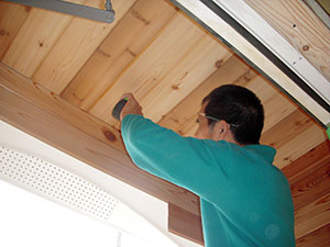 北九州市八幡西区F様邸のナチュレウォールが張られている様子です♪       ナチュレウォールは、天然木だから実現できる経年美が特徴です♡       F様邸のこの玄関も...