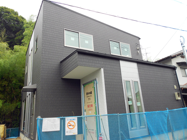 南区桧原H様邸の外壁サイディングが完了しました♪ H様邸はシックな落ち着いた雰囲気ですね♪ 夜明かりを灯した時、とっても綺麗な雰囲気になりそうです。