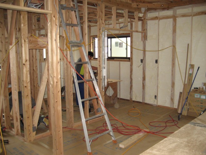 古賀市今の庄F様邸の幸せづくり状況:吹付け断熱工事