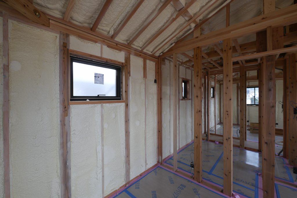 太宰府市K様邸の幸せづくり状況です! 吹付断熱工事完成です♪ 次の工程に進みます!