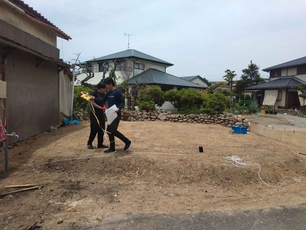 こんにちは、福岡の注文住宅セイケンハウスです♪ 先日、須恵町一番田、K様邸にて地縄(自縄張り)の作業を行いました。 地縄張りとは、建物の位置出しをする作業です。 敷...