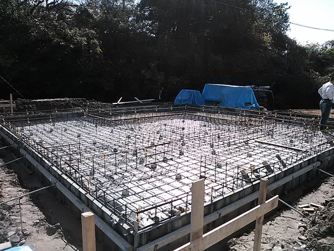 須恵町赤坂(2号地)E様邸の幸せづくり状況:基礎配筋・基礎完了