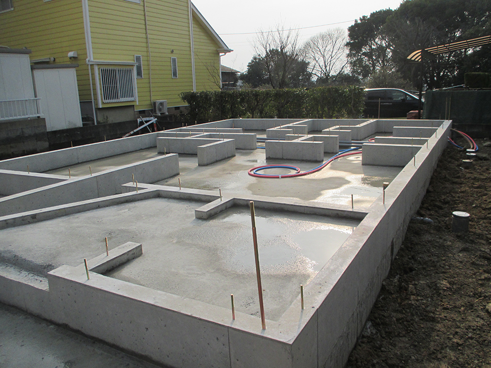 須恵町Y様邸の幸せづくり状況です! 基礎が完成しました! ベタ基礎は、安定性が高く床全体をコンクリートで支えることから地震の揺れにも強いと言われています! 全体を見渡して、ひび割れやジャンカ等がないか確認し...
