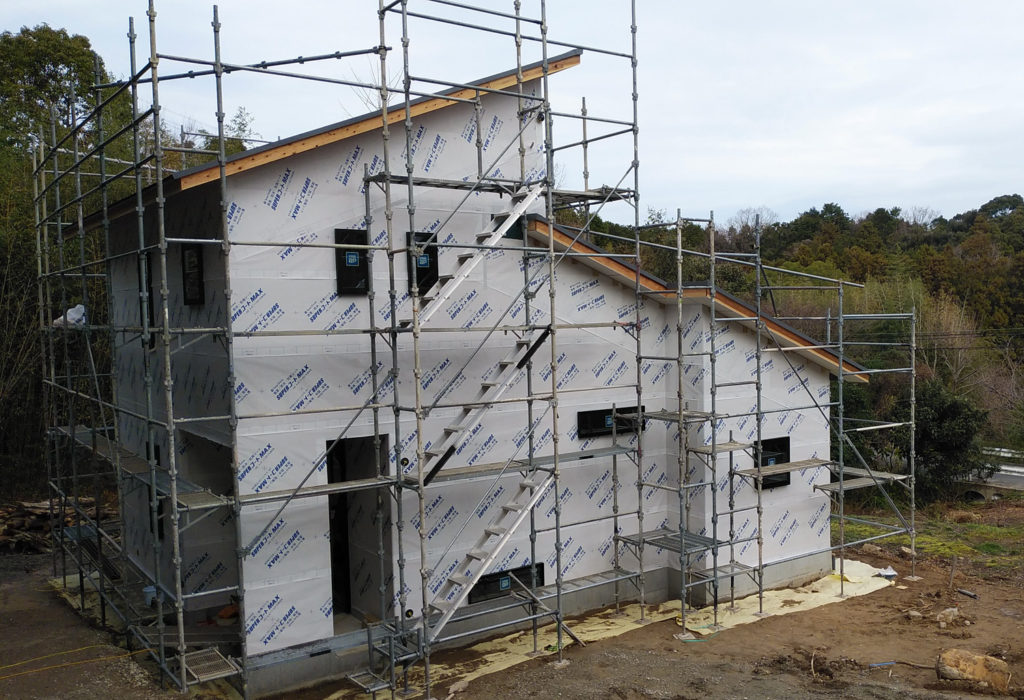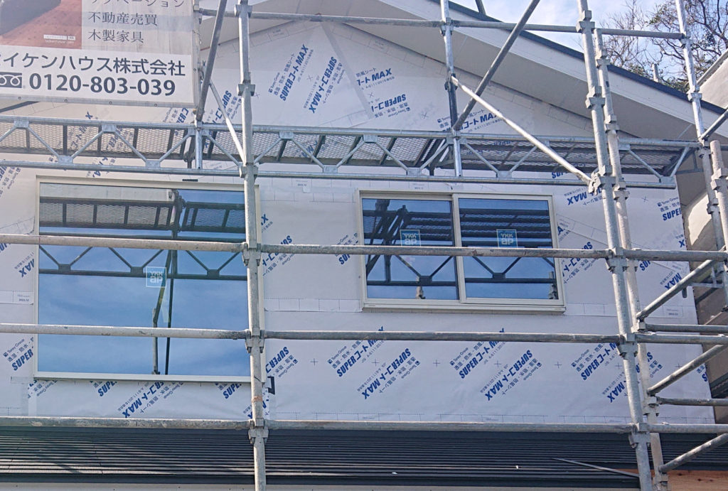 福津市D様邸の幸せづくり状況です! 外壁シート工事完了してます♪ 外壁シートの役割は、雨水や湿気から建物を守ることです! 万が一の雨水が、構造体まで達しないように防ぐ役割を外壁シートは果たしています! 次の工程に進みます...