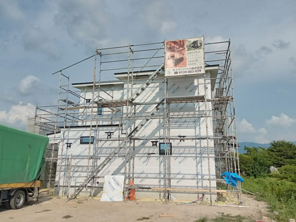 太宰府市N様邸の幸せづくり状況です! 外壁工事中です♪ 外壁(透湿防水防風)シートを貼って、建物を守る準備ができたら外壁工事に進みます! 外観の重要な役割を果たす外壁! どんな仕上がりになるか楽しみです♪ 次の工程に進み...