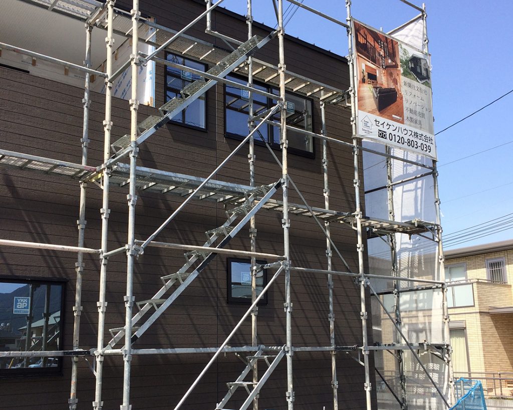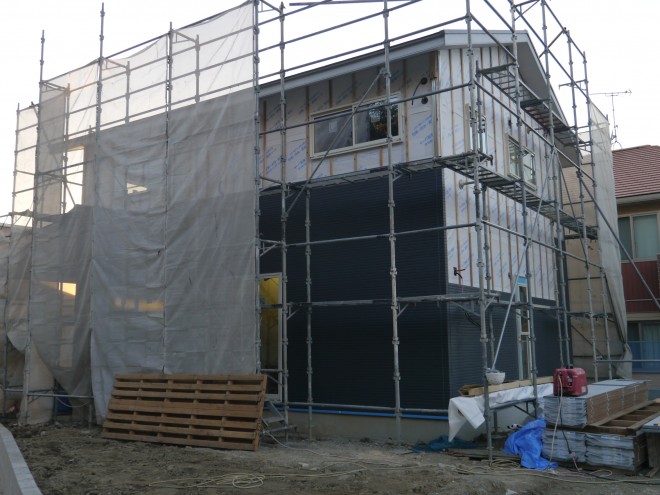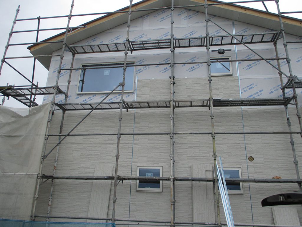 須恵町赤坂(1号地)F様邸の幸せづくり状況:外壁工事