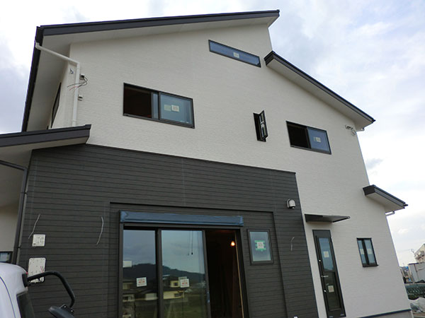 宇美町井野S様邸の足場が解体されました♪ やっと全景が見えましたね!! 窓がたくさんあって、明るいお部屋なんだろうなと思います。 ドアもどんな仕上がりか楽しみです♪