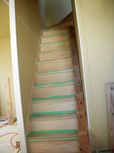 宇美町光正寺4号地W様邸の造作工事の様子です♪     断熱材を吹付け、電気配線等行ったあとに、ボードを打ちつける工事を行うと、いよいよ壁の土台のできあがりです♪ 打ちつけた後の凹凸をパテで均一にした...