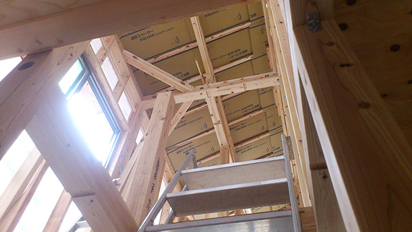 宇美町宇美O様邸の造作の様子です♪ 大工さんの工事も順調に進んでいます。 サッシ取り付けも完了していますね♪ 明るい光が差し込む窓。 素敵なお家に仕上がっていっています♪