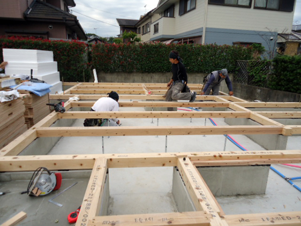 いよいよ棟上げが近づいてきました♪ 1本1本丁寧に組み合わせていき、土台となる木を敷きつめていきます♪ そして、床断熱材も入りました!! そしていよいよ棟上げが近づいてきましたK様邸♪ 棟上げの前段階として前起こしを行い...