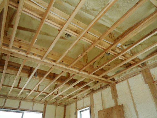 宇美町 I 様邸の幸せづくり状況:吹付け断熱完了♪