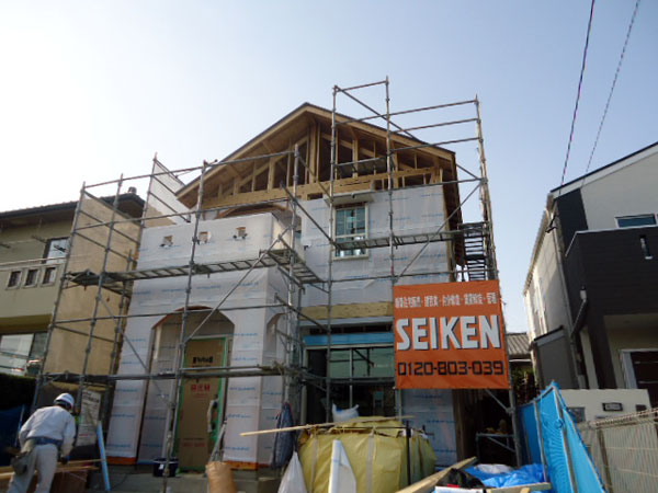宗像市日の里Y様邸の幸せづくり状況:外壁シート工事♪
