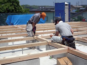 基礎の工事が終了しますと、木工事に移ります。土台敷きは木工事の初めの工程になります。 土台敷きとは基礎の上に土台という木材を敷く作業です。