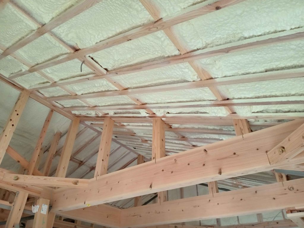 宇美町K様邸の幸せづくり状況です♪ 吹付断熱工事完了してます! 吹き付けの断熱材は、住宅のありとあらゆる隙間に充鎮し、しっかりとした断熱層を形成します! 次の工程に進みます~♪ ★福岡の新築・一戸建て・注文...