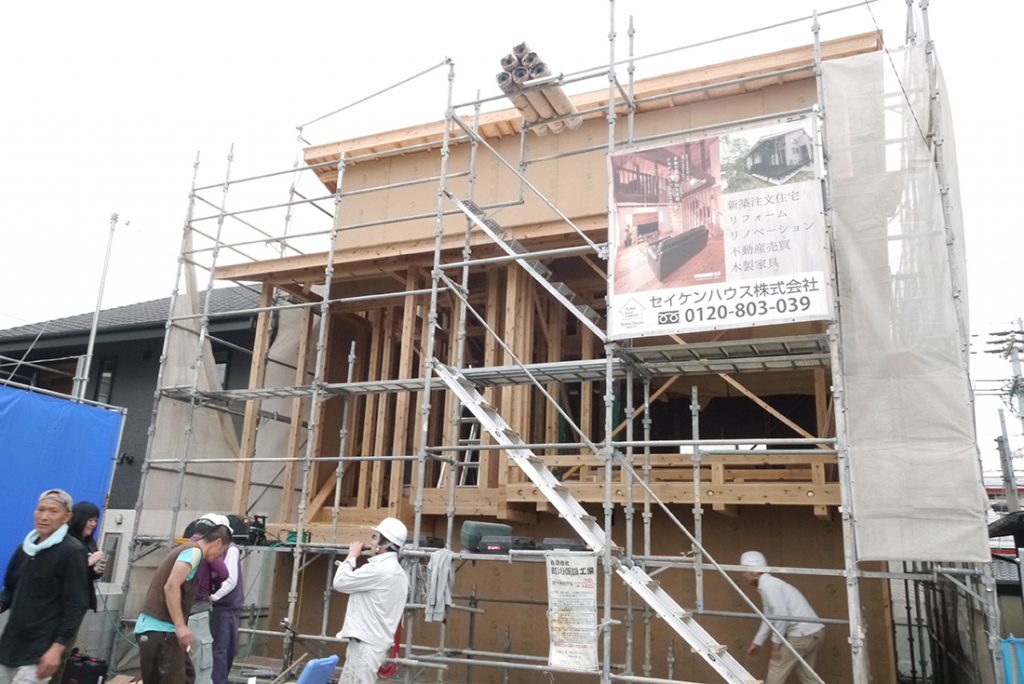 こんにちは、福岡の注文住宅セイケンハウスです~♪ 須恵町I様邸にて行われた棟上げ工事の様子です! 棟上げの朝は早く、スタッフ、大工さんたちも早朝から集合し、ミーティングの後棟上げスタート( `ー´)ノ♪ 棟梁中心に、作業...