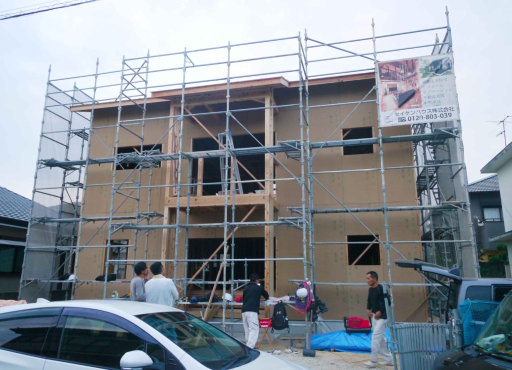 こんにちは、福岡の注文住宅セイケンハウスです~♪ 先日、宇美町に建築予定I様邸の上棟工事が行われました! 棟上げの朝は早いです! 普段の木工事は、1~2名の大工さんで行いますが、棟上げの日は、1階から2階までを一日で組み...