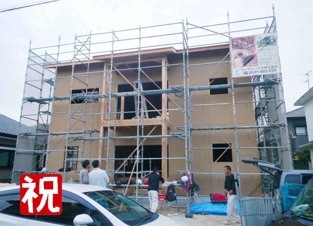 こんにちは、福岡の注文住宅セイケンハウスです~♪ 先日、春日市にてA様邸の棟上げ工事が行われました! 棟上げとは、柱や梁などの建物全体の骨組みを作り、最後に棟木を納めることを言います! 棟木とは、屋根小屋組みの最も高いと...