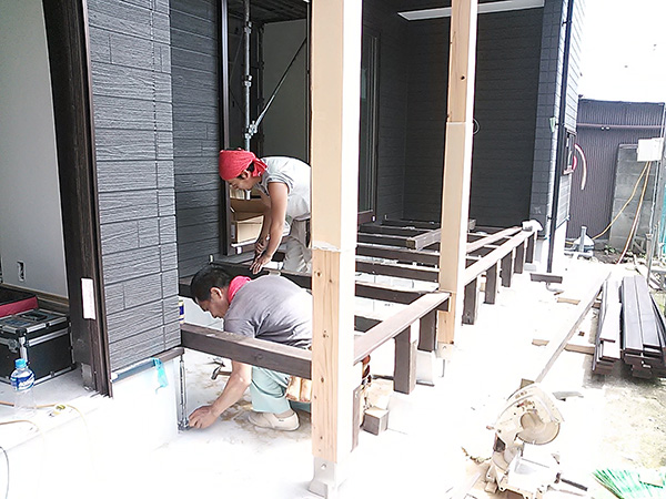 須恵町旅石O様邸の幸せづくり状況:ウッドデッキ工事完了