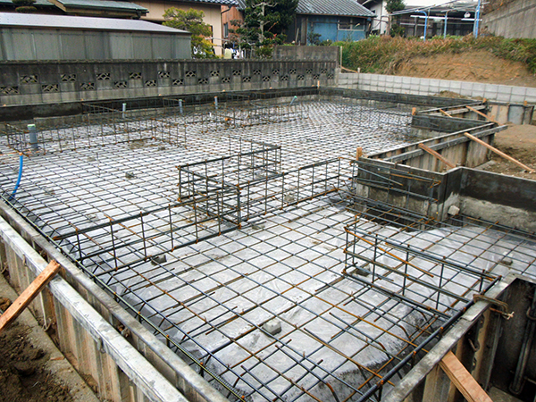 配筋をする前の、捨てコンクリートの様子です。 敷地の周りの土の中に、砂利を約10㎝とその上にコンクリートを約3㎝ 流しこみます。 この捨てコンクリートの上に配筋を立てていくことにより、より基礎の強度を強くすることが出来ま...