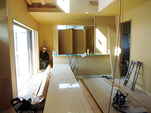 糸島市K様邸の幸せづくり状況:ボード貼り完了♪