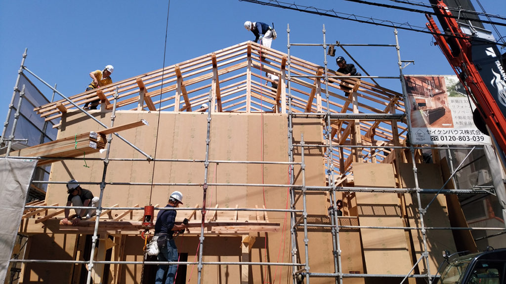 須恵町I様邸の幸せづくり状況です♪ 棟上げが行われました! 棟上げは、他にも建前(たてまえ)建舞(たてまい)という言い方があります! 沢山の大工さんが集まり、軸組みの組み立てを行い、一番高い棟木を設置する一...