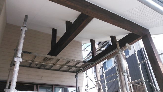 須恵町須恵5号地N様邸の塗装工事と造作工事が行われています♪   まずは塗装工事から~!     柱や梁を塗っていきます♪   一筆入魂!で作業してくださる職人さん!  ...