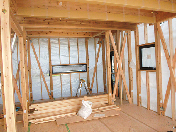 須恵町S様邸のサッシ取り付けの様子です♪ 大きな窓から光が差し込み、心地よい風が入ってくるって素敵ですよね♡ ドアも取り付けられ、そして筋違もはいりました♪ 筋違とは、柱、梁、桁などで四辺形に組まれた軸組の中に斜めに入れ...