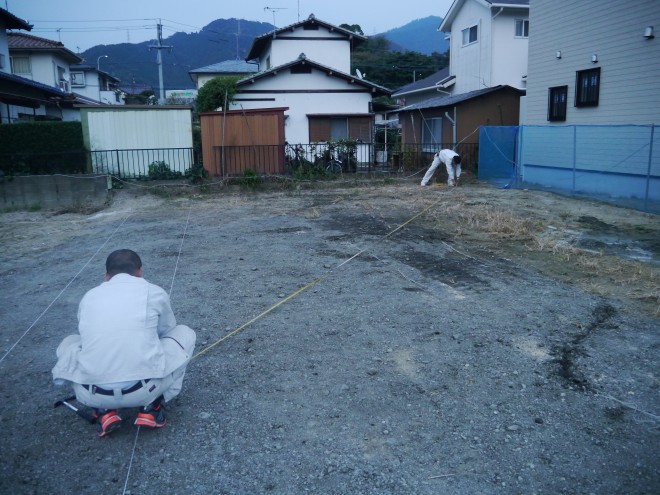 須恵4号地T様邸の地縄の様子です♪     地縄とは・・ 建物が敷地に対してどのように建てられるかを確認する工程です♪ 図面を見ながら、ズレの無いよう正確に測っていき縄を張っていきます。  ...