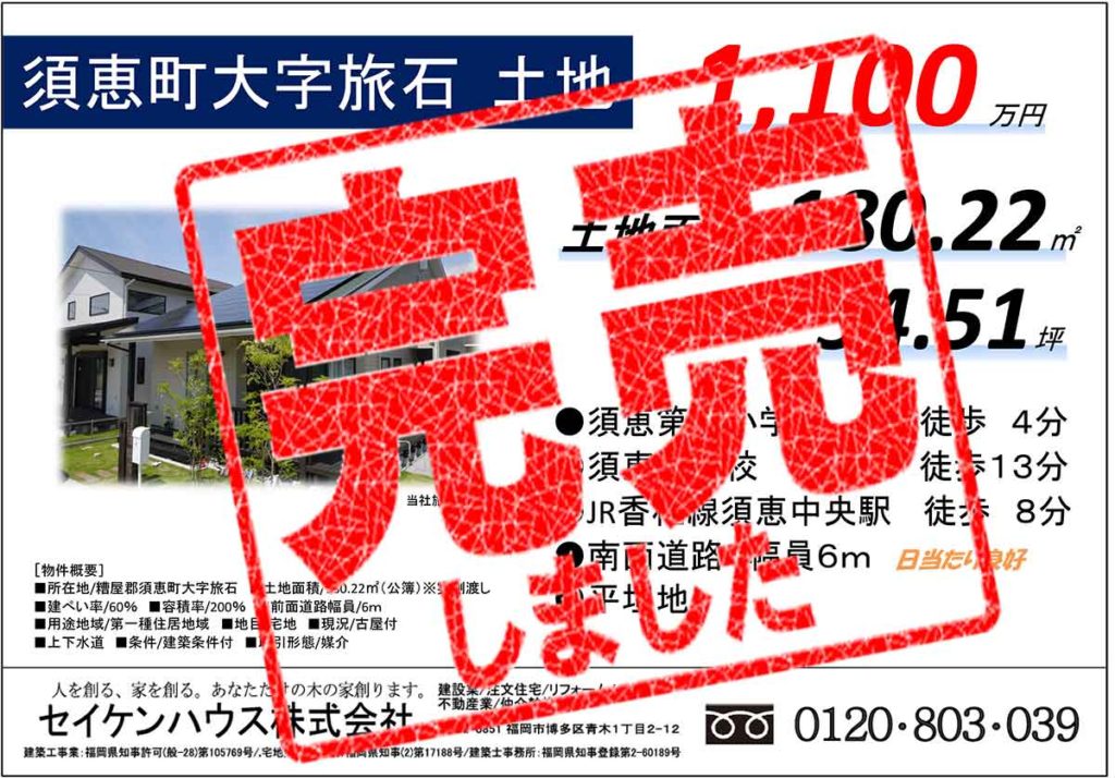 須恵町 大字 旅石~完売しました~